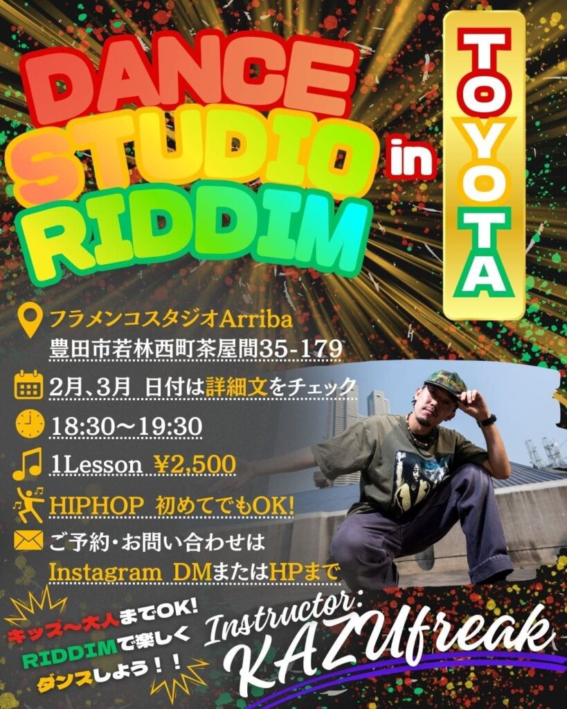 DANCE STUDIO RIDDIMは、豊明市のストリートダンススクールです。国内トップレベルの現役ダンサーが